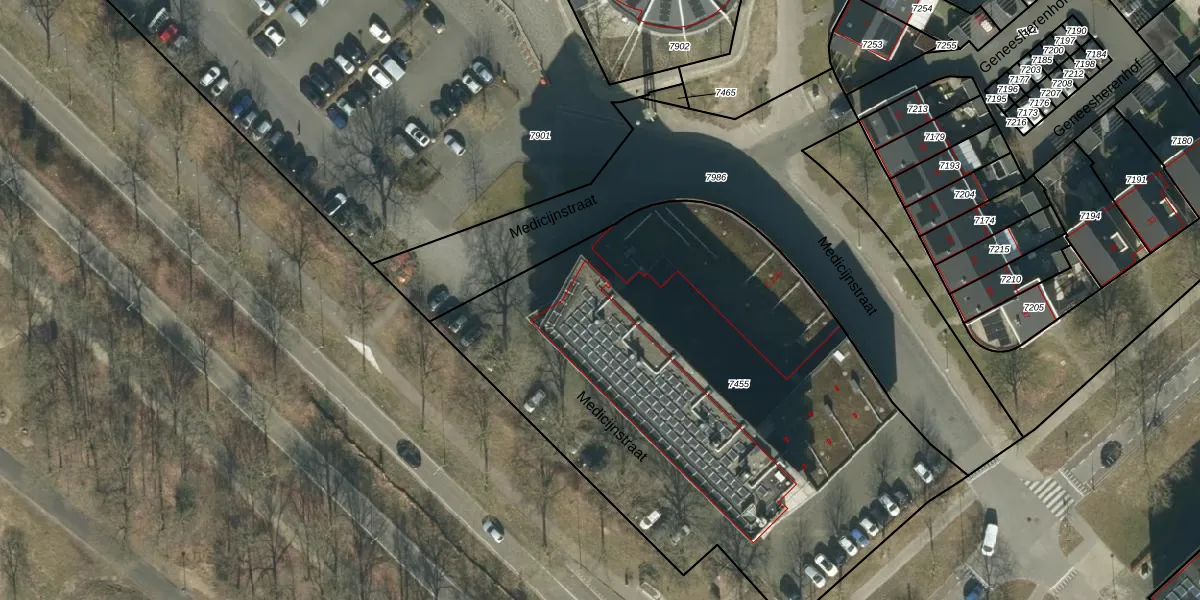 Het perceel waarop Medicijnstraat 106 staat heeft een oppervlakte van 3260 m². Dit is een zeer groot perceel. De perceeloppervlakte wordt geregistreerd door het Kadaster. Gedetailleerde informatie over de maten van dit perceel kunt u vinden in het rapport Kadastrale kaart met maatvoering van Medicijnstraat 106.