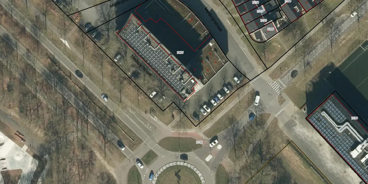 Het perceel waarop Medicijnstraat 12 staat heeft een oppervlakte van 3260 m². Dit is een zeer groot perceel. De perceeloppervlakte wordt geregistreerd door het Kadaster. Gedetailleerde informatie over de maten van dit perceel kunt u vinden in het rapport Kadastrale kaart met maatvoering van Medicijnstraat 12.