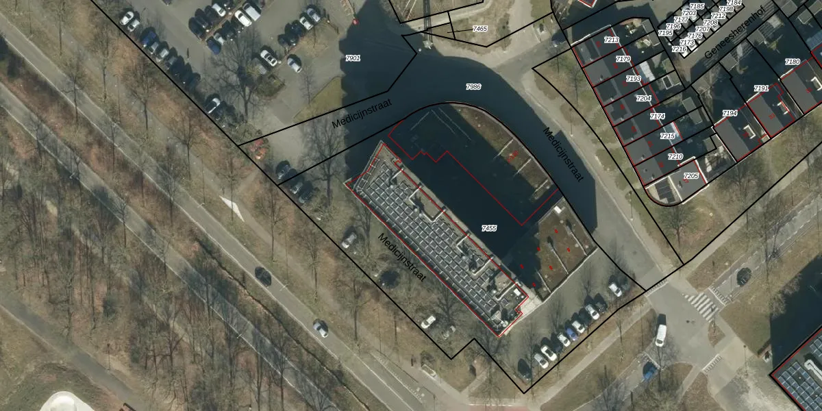 Het perceel waarop Medicijnstraat 80 staat heeft een oppervlakte van 3260 m². Dit is een zeer groot perceel. De perceeloppervlakte wordt geregistreerd door het Kadaster. Gedetailleerde informatie over de maten van dit perceel kunt u vinden in het rapport Kadastrale kaart met maatvoering van Medicijnstraat 80.