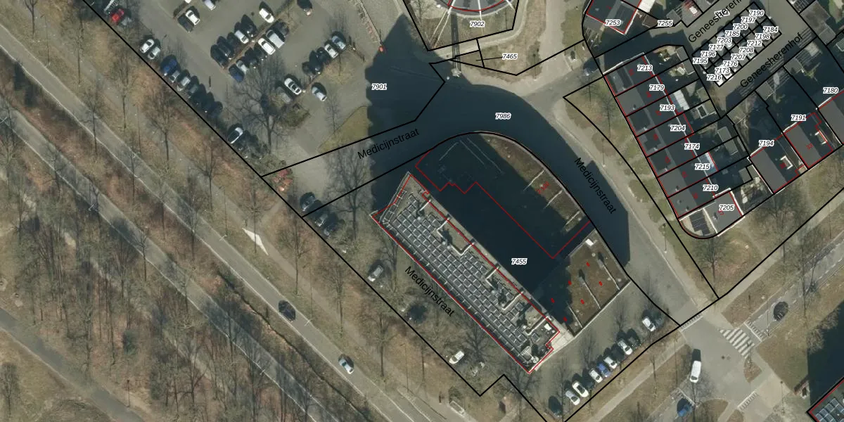 Het perceel waarop Medicijnstraat 94 staat heeft een oppervlakte van 3260 m². Dit is een zeer groot perceel. De perceeloppervlakte wordt geregistreerd door het Kadaster. Gedetailleerde informatie over de maten van dit perceel kunt u vinden in het rapport Kadastrale kaart met maatvoering van Medicijnstraat 94.
