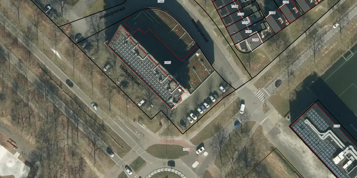 Het perceel waarop Medicijnstraat 96 staat heeft een oppervlakte van 3260 m². Dit is een zeer groot perceel. De perceeloppervlakte wordt geregistreerd door het Kadaster. Gedetailleerde informatie over de maten van dit perceel kunt u vinden in het rapport Kadastrale kaart met maatvoering van Medicijnstraat 96.