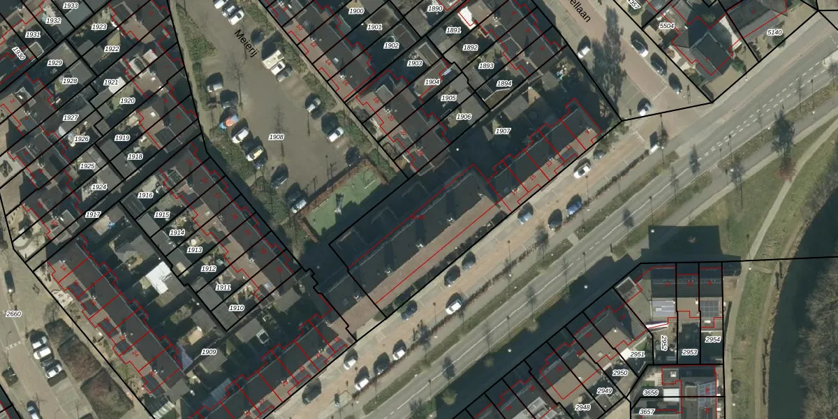 Het perceel waarop Meierij 32 staat heeft een oppervlakte van 1664 m². Dit is een zeer groot perceel. De perceeloppervlakte wordt geregistreerd door het Kadaster. Gedetailleerde informatie over de maten van dit perceel kunt u vinden in het rapport Kadastrale kaart met maatvoering van Meierij 32.
