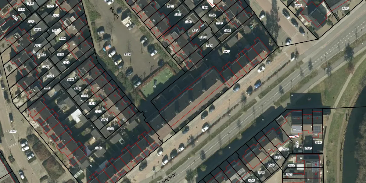 Het perceel waarop Meierij 34 staat heeft een oppervlakte van 1664 m². Dit is een zeer groot perceel. De perceeloppervlakte wordt geregistreerd door het Kadaster. Gedetailleerde informatie over de maten van dit perceel kunt u vinden in het rapport Kadastrale kaart met maatvoering van Meierij 34.