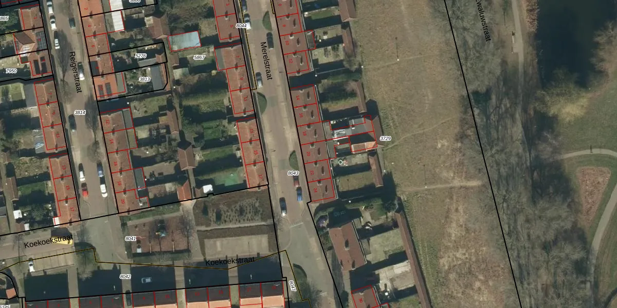 Het perceel waarop Merelstraat 20 staat heeft een oppervlakte van 9811 m². Dit is een zeer groot perceel. De perceeloppervlakte wordt geregistreerd door het Kadaster. Gedetailleerde informatie over de maten van dit perceel kunt u vinden in het rapport Kadastrale kaart met maatvoering van Merelstraat 20.