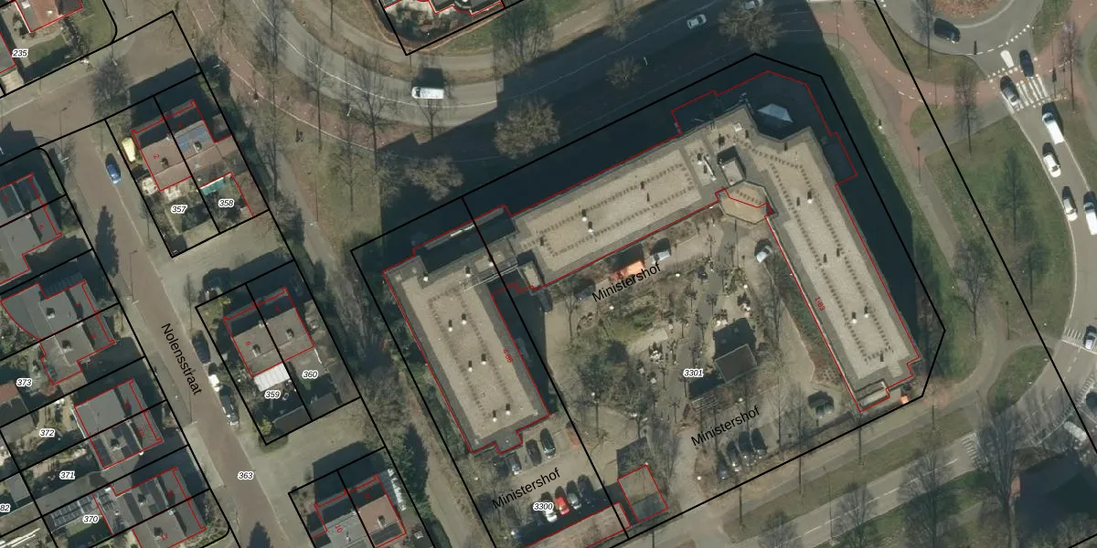 Ministershof 1-K1 is gelegen op kadastraal perceel OSS00L3301. Deze kadastrale aanduiding is uniek en wordt gebruikt door het Kadaster om eigendomsrechten en andere zakelijke rechten vast te leggen. Het perceel maakt onderdeel uit van de kadastrale gemeente Oss.