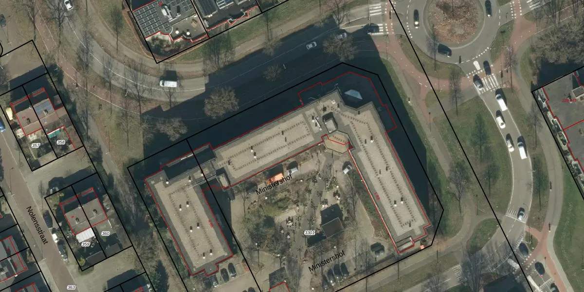 Het perceel waarop Ministershof 1-K109 staat heeft een oppervlakte van 4681 m². Dit is een zeer groot perceel. De perceeloppervlakte wordt geregistreerd door het Kadaster. Gedetailleerde informatie over de maten van dit perceel kunt u vinden in het rapport Kadastrale kaart met maatvoering van Ministershof 1-K109.