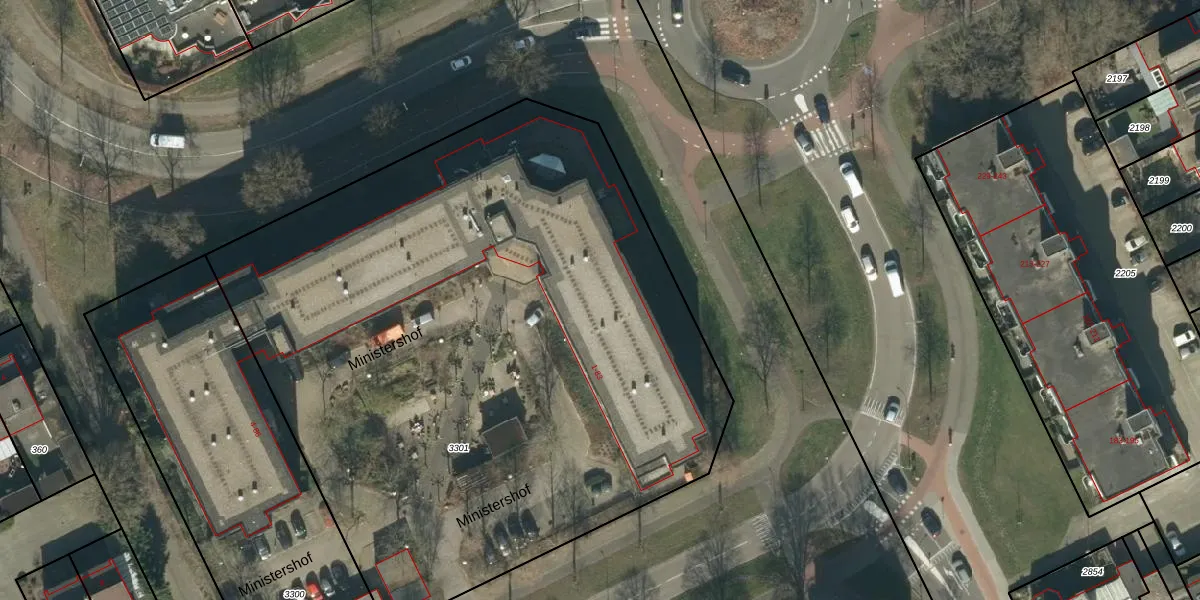 Ministershof 1-K220 is gelegen op kadastraal perceel OSS00L3301. Deze kadastrale aanduiding is uniek en wordt gebruikt door het Kadaster om eigendomsrechten en andere zakelijke rechten vast te leggen. Het perceel maakt onderdeel uit van de kadastrale gemeente Oss.