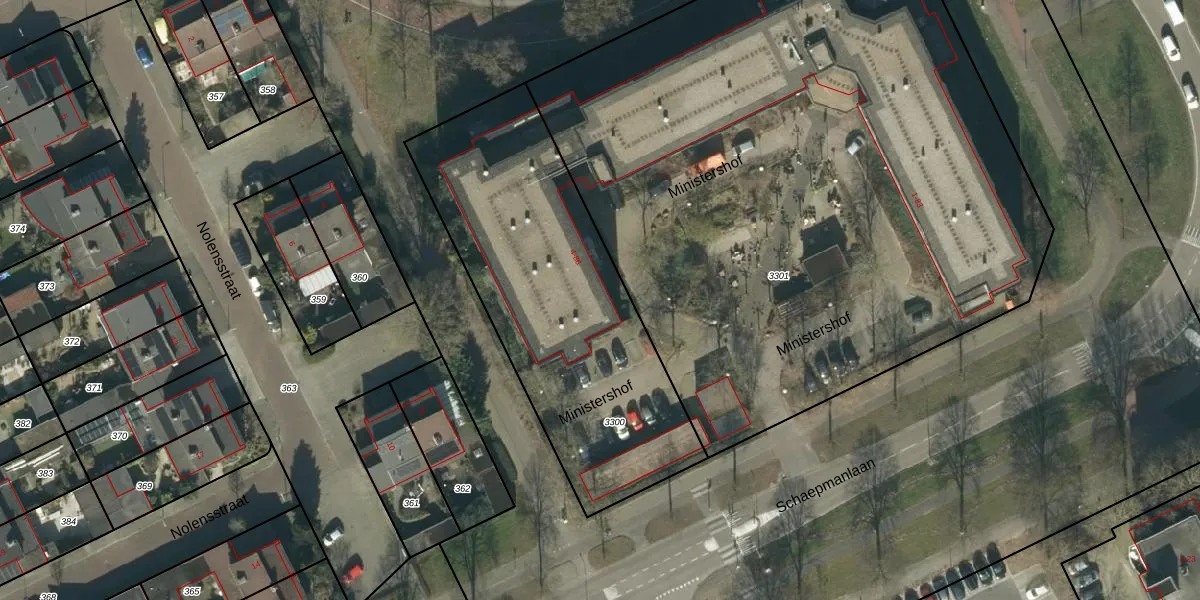 Ministershof 16 is gelegen op kadastraal perceel OSS00L3300. Deze kadastrale aanduiding is uniek en wordt gebruikt door het Kadaster om eigendomsrechten en andere zakelijke rechten vast te leggen. Het perceel maakt onderdeel uit van de kadastrale gemeente Oss.