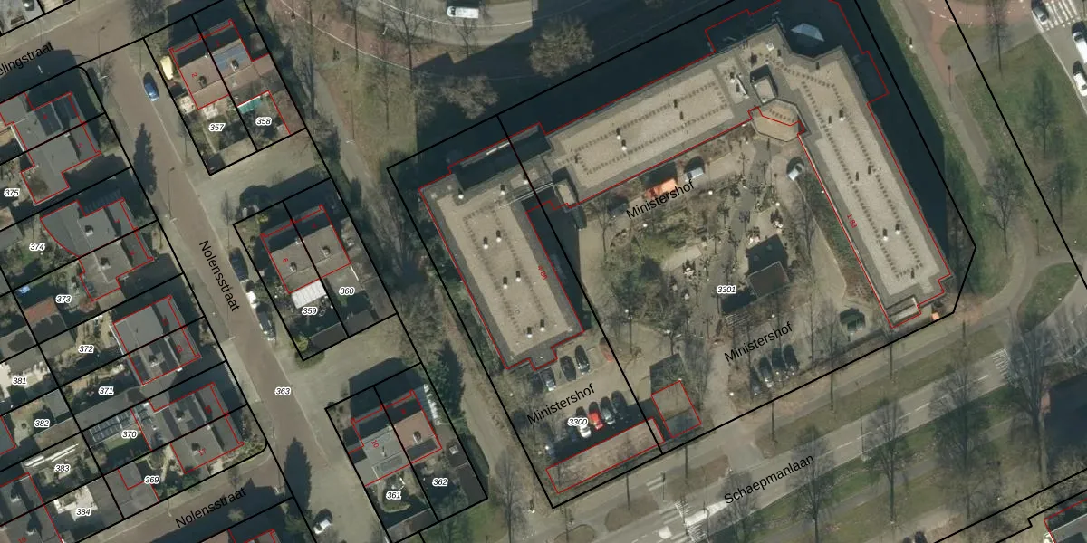 Ministershof 18 is gelegen op kadastraal perceel OSS00L3300. Deze kadastrale aanduiding is uniek en wordt gebruikt door het Kadaster om eigendomsrechten en andere zakelijke rechten vast te leggen. Het perceel maakt onderdeel uit van de kadastrale gemeente Oss.
