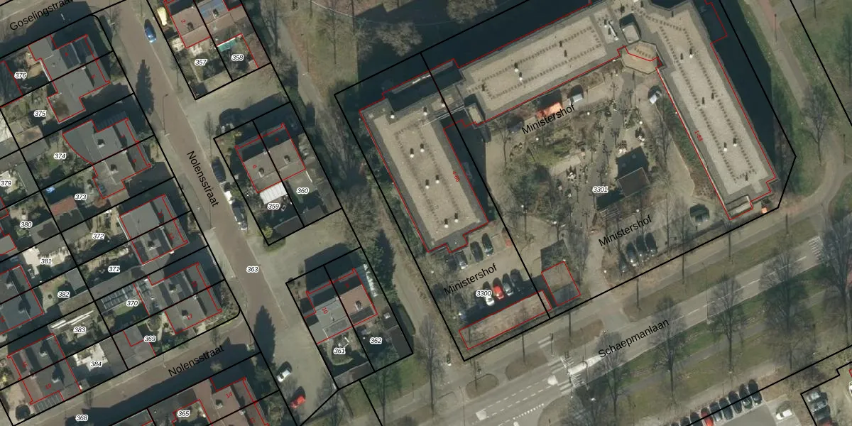 Ministershof 30 is gelegen op kadastraal perceel OSS00L3300. Deze kadastrale aanduiding is uniek en wordt gebruikt door het Kadaster om eigendomsrechten en andere zakelijke rechten vast te leggen. Het perceel maakt onderdeel uit van de kadastrale gemeente Oss.