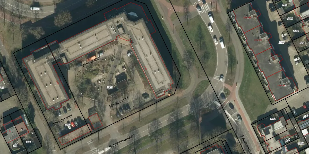 Het perceel waarop Ministershof 37 staat heeft een oppervlakte van 4681 m². Dit is een zeer groot perceel. De perceeloppervlakte wordt geregistreerd door het Kadaster. Gedetailleerde informatie over de maten van dit perceel kunt u vinden in het rapport Kadastrale kaart met maatvoering van Ministershof 37.