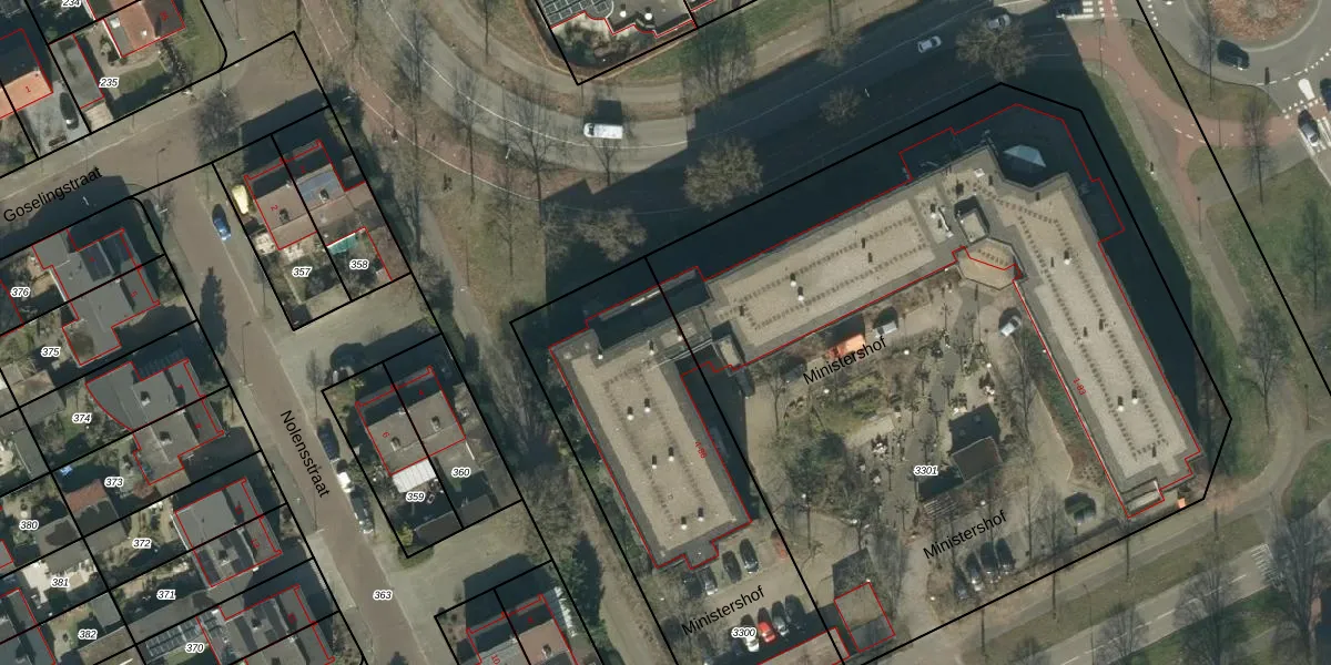 Ministershof 38 is gelegen op kadastraal perceel OSS00L3300. Deze kadastrale aanduiding is uniek en wordt gebruikt door het Kadaster om eigendomsrechten en andere zakelijke rechten vast te leggen. Het perceel maakt onderdeel uit van de kadastrale gemeente Oss.