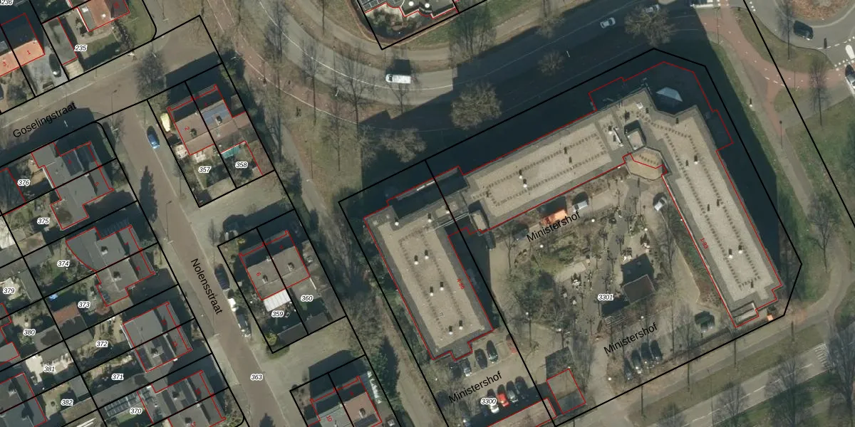 Het perceel waarop Ministershof 40 staat heeft een oppervlakte van 1564 m². Dit is een zeer groot perceel. De perceeloppervlakte wordt geregistreerd door het Kadaster. Gedetailleerde informatie over de maten van dit perceel kunt u vinden in het rapport Kadastrale kaart met maatvoering van Ministershof 40.