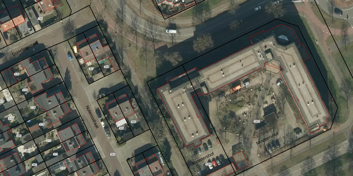 Het perceel waarop Ministershof 74 staat heeft een oppervlakte van 1564 m². Dit is een zeer groot perceel. De perceeloppervlakte wordt geregistreerd door het Kadaster. Gedetailleerde informatie over de maten van dit perceel kunt u vinden in het rapport Kadastrale kaart met maatvoering van Ministershof 74.