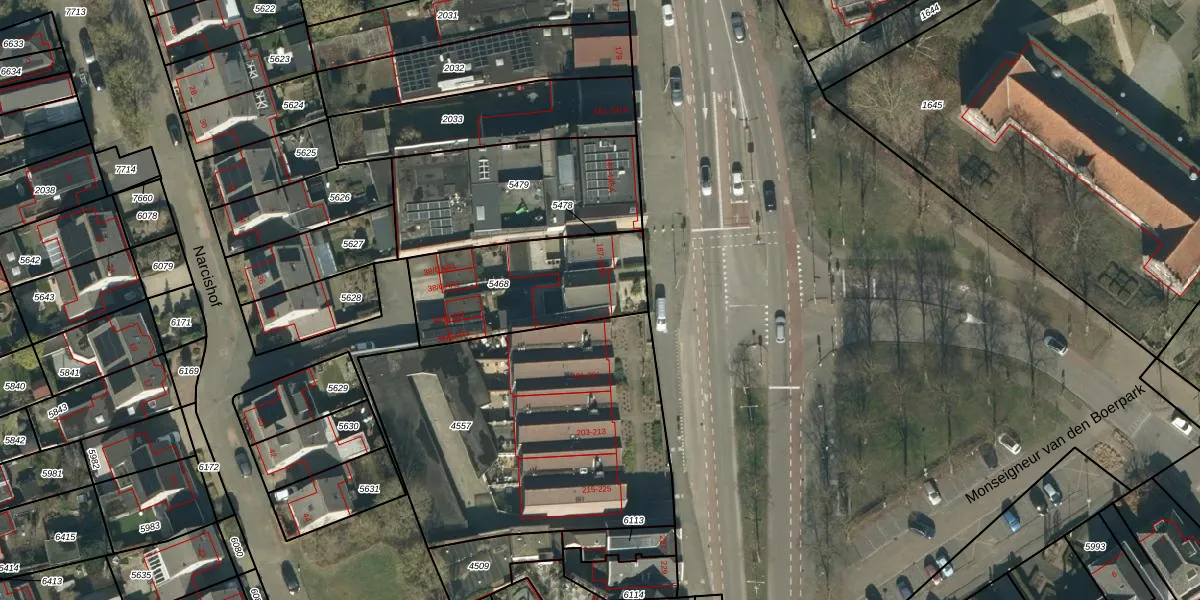 Het adres is gelegen op perceel 5468 in de sectie E en de kadastrale gemeente Oss. De kadastrale aanduiding is aldus OSS00-E-5468. De gemiddelde perceelgrootte in Oss is 2394,12 m². Dit perceel is kleiner: de perceeloppervlakte bedraagt 570 m². De grootste perceeloppervlakte in de kadastrale gemeente is 36,1 ha. De kleinste oppervlakte bedraagt 0 m². Op het perceel zijn 8 adressen aanwezig. De laatste wijziging in het de Basisregistratie Kadaster (BRK) was op 08-07-2009.