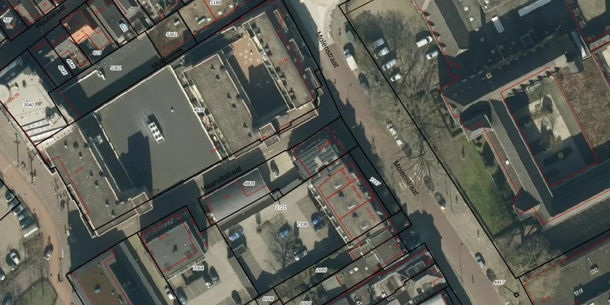 Het perceel waarop Molenstraat 35-B staat heeft een oppervlakte van 585 m². Dit is een groot perceel. De perceeloppervlakte wordt geregistreerd door het Kadaster. Gedetailleerde informatie over de maten van dit perceel kunt u vinden in het rapport Kadastrale kaart met maatvoering van Molenstraat 35-B.