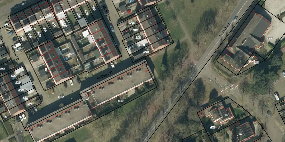 Het perceel waarop Mollegang 22 staat heeft een oppervlakte van 1751 m². Dit is een zeer groot perceel. De perceeloppervlakte wordt geregistreerd door het Kadaster. Gedetailleerde informatie over de maten van dit perceel kunt u vinden in het rapport Kadastrale kaart met maatvoering van Mollegang 22.