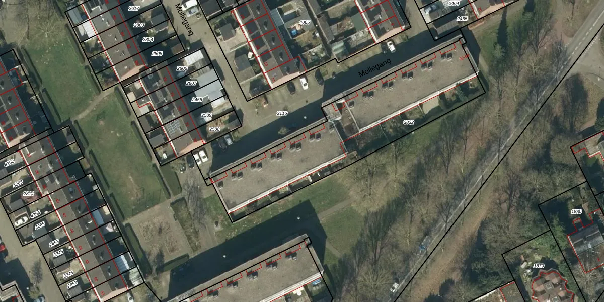 Het perceel waarop Mollegang 60 staat heeft een oppervlakte van 1751 m². Dit is een zeer groot perceel. De perceeloppervlakte wordt geregistreerd door het Kadaster. Gedetailleerde informatie over de maten van dit perceel kunt u vinden in het rapport Kadastrale kaart met maatvoering van Mollegang 60.