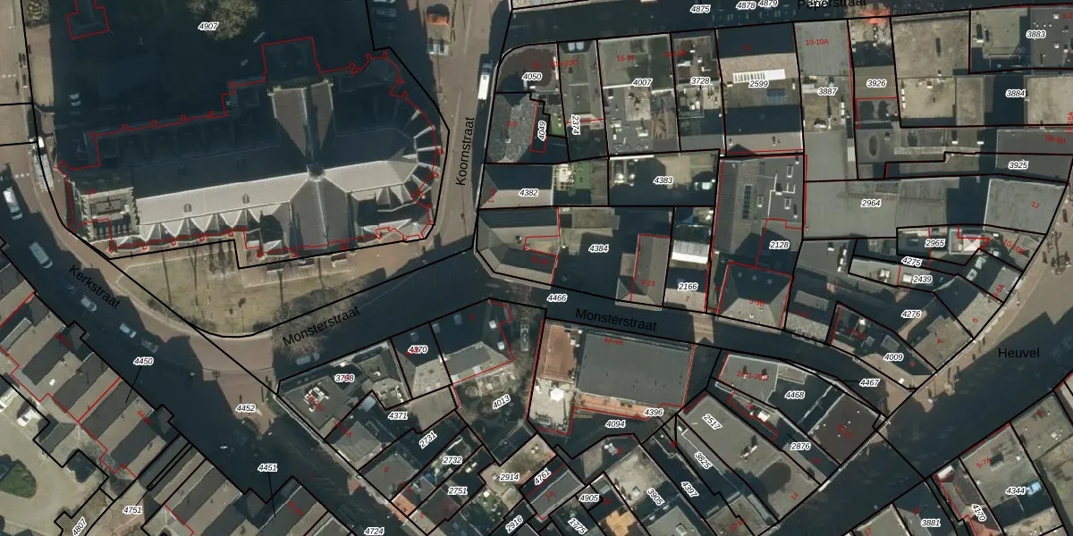 Monsterstraat 19 is gelegen op kadastraal perceel OSS00A4384. Deze kadastrale aanduiding is uniek en wordt gebruikt door het Kadaster om eigendomsrechten en andere zakelijke rechten vast te leggen. Het perceel maakt onderdeel uit van de kadastrale gemeente Oss.