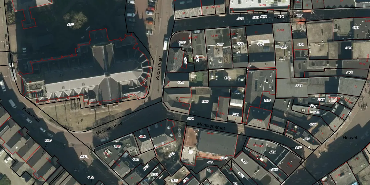 Monsterstraat 21 is gelegen op kadastraal perceel OSS00A4384. Deze kadastrale aanduiding is uniek en wordt gebruikt door het Kadaster om eigendomsrechten en andere zakelijke rechten vast te leggen. Het perceel maakt onderdeel uit van de kadastrale gemeente Oss.