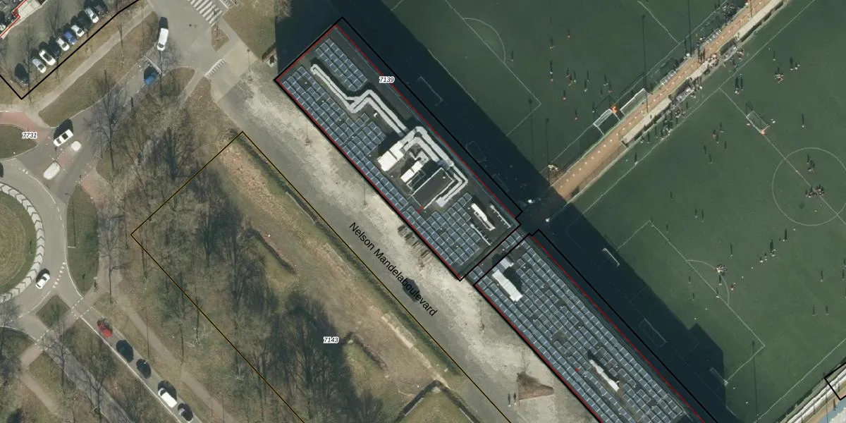 Het perceel waarop Nelson Mandelaboulevard 4 staat heeft een oppervlakte van 1410 m². Dit is een zeer groot perceel. De perceeloppervlakte wordt geregistreerd door het Kadaster. Gedetailleerde informatie over de maten van dit perceel kunt u vinden in het rapport Kadastrale kaart met maatvoering van Nelson Mandelaboulevard 4.