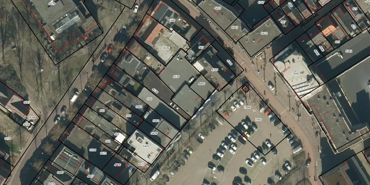 Het perceel waarop Nieuwstraat 15-B staat heeft een oppervlakte van 614 m². Dit is een groot perceel. De perceeloppervlakte wordt geregistreerd door het Kadaster. Gedetailleerde informatie over de maten van dit perceel kunt u vinden in het rapport Kadastrale kaart met maatvoering van Nieuwstraat 15-B.