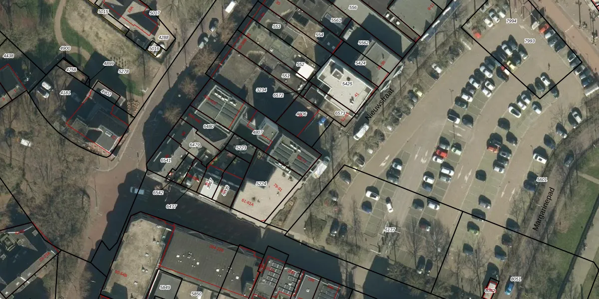 Het perceel waarop Nieuwstraat 71 staat heeft een oppervlakte van 471 m². Dit is een groot perceel. De perceeloppervlakte wordt geregistreerd door het Kadaster. Gedetailleerde informatie over de maten van dit perceel kunt u vinden in het rapport Kadastrale kaart met maatvoering van Nieuwstraat 71.