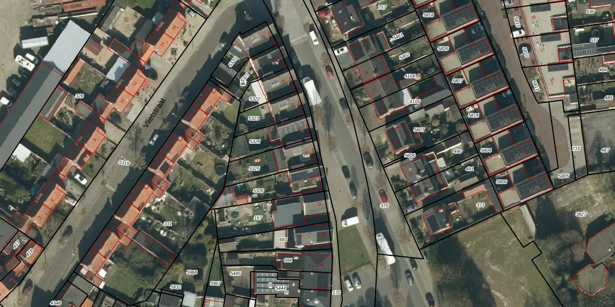 Gebruik de zoekbalk of klik op een perceel voor informatie over de adressen binnen dit perceel.