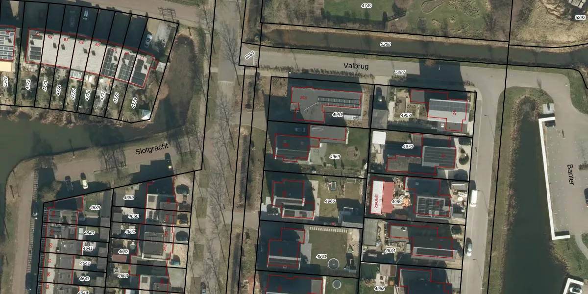 Gebruik de zoekbalk of klik op een perceel voor informatie over de adressen binnen dit perceel.
