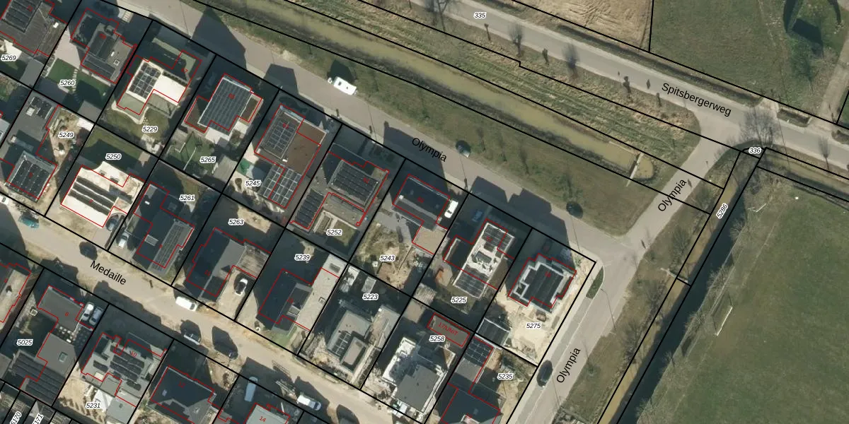 Het perceel waarop Olympia 59 staat heeft een oppervlakte van 479 m². Dit is een groot perceel. De perceeloppervlakte wordt geregistreerd door het Kadaster. Gedetailleerde informatie over de maten van dit perceel kunt u vinden in het rapport Kadastrale kaart met maatvoering van Olympia 59.