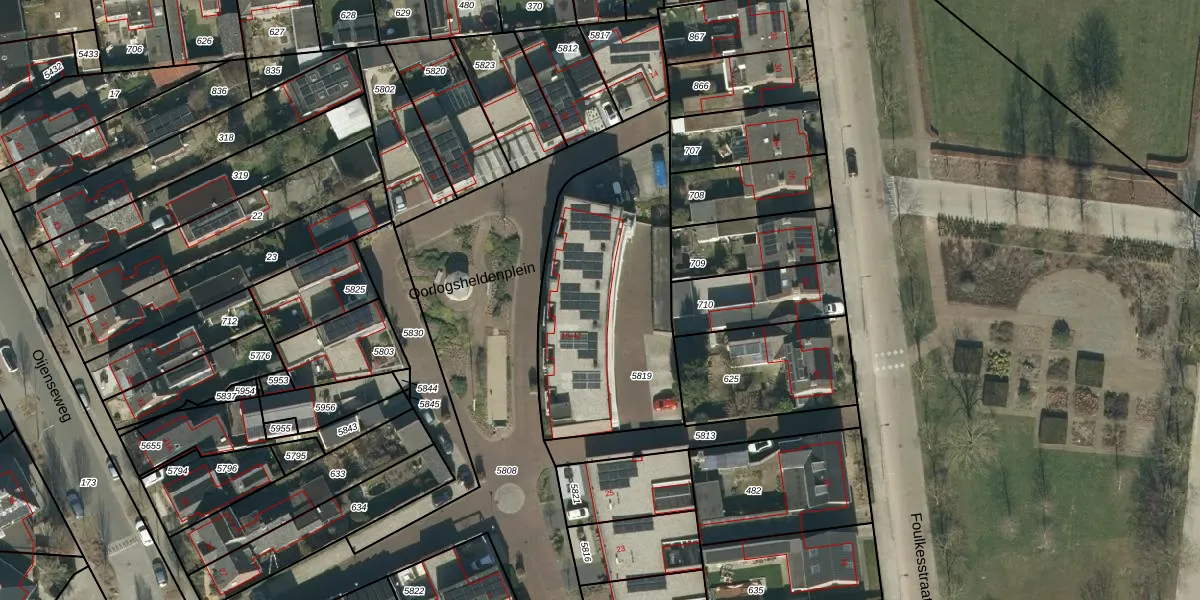 Het perceel waarop Oorlogsheldenplein 20 staat heeft een oppervlakte van 985 m². Dit is een groot perceel. De perceeloppervlakte wordt geregistreerd door het Kadaster. Gedetailleerde informatie over de maten van dit perceel kunt u vinden in het rapport Kadastrale kaart met maatvoering van Oorlogsheldenplein 20.