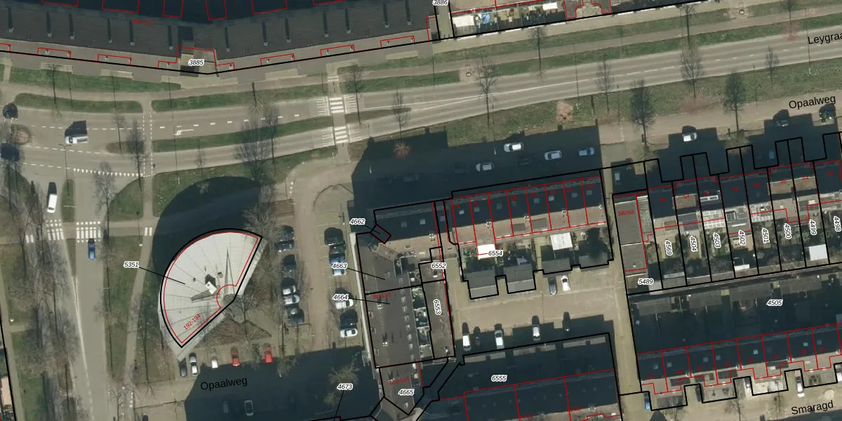 Opaalweg 100 is gelegen op kadastraal perceel OSS00E4663. Deze kadastrale aanduiding is uniek en wordt gebruikt door het Kadaster om eigendomsrechten en andere zakelijke rechten vast te leggen. Het perceel maakt onderdeel uit van de kadastrale gemeente Oss.