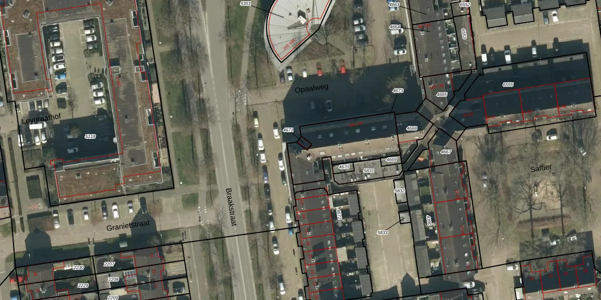 Het perceel waarop Opaalweg 182 staat heeft een oppervlakte van 517 m². Dit is een groot perceel. De perceeloppervlakte wordt geregistreerd door het Kadaster. Gedetailleerde informatie over de maten van dit perceel kunt u vinden in het rapport Kadastrale kaart met maatvoering van Opaalweg 182.