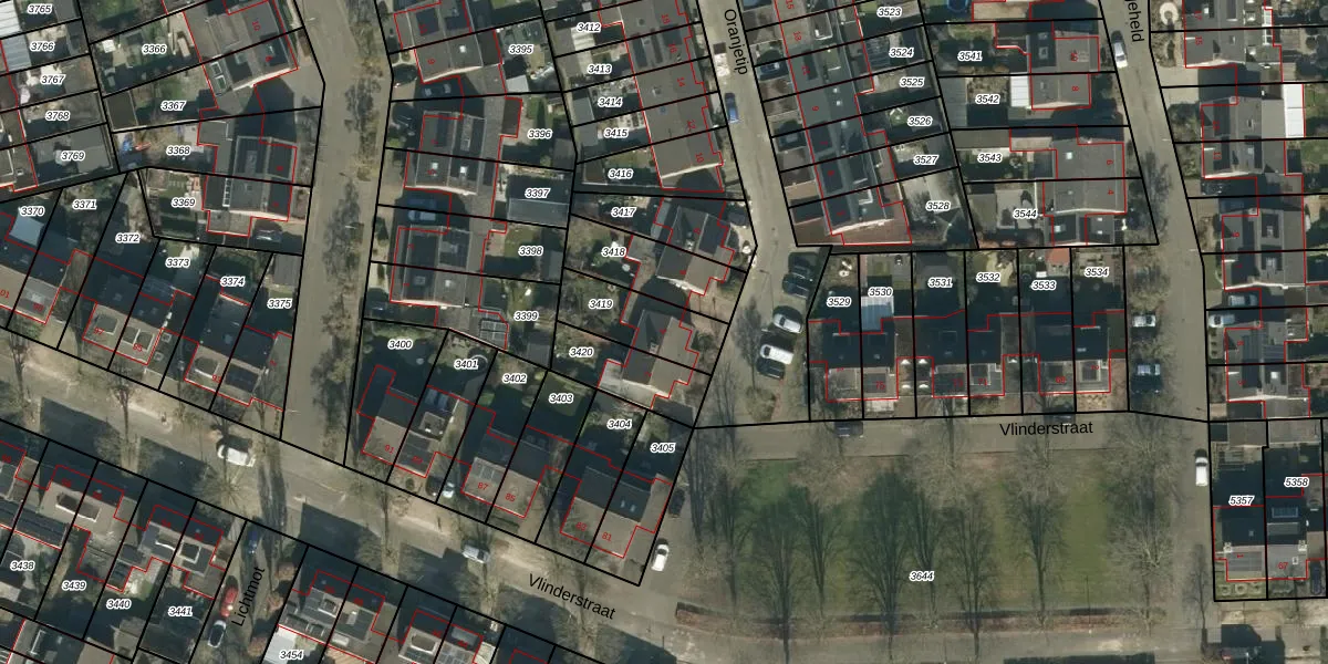 Gebruik de zoekbalk of klik op een perceel voor informatie over de adressen binnen dit perceel.