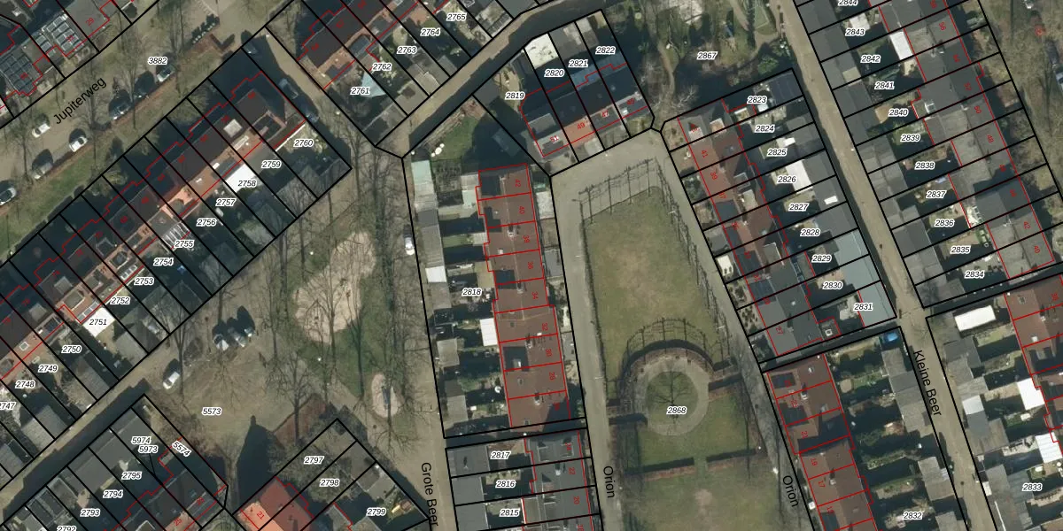 Orion 36 is gelegen op kadastraal perceel OSS00K2818. Deze kadastrale aanduiding is uniek en wordt gebruikt door het Kadaster om eigendomsrechten en andere zakelijke rechten vast te leggen. Het perceel maakt onderdeel uit van de kadastrale gemeente Oss.