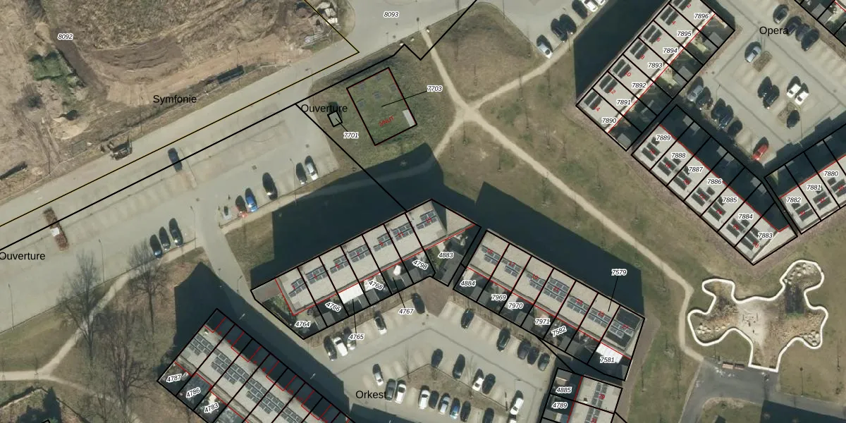 Het perceel waarop Orkest 13 staat heeft een oppervlakte van 190 m². Dit is een middelgroot perceel. De perceeloppervlakte wordt geregistreerd door het Kadaster. Gedetailleerde informatie over de maten van dit perceel kunt u vinden in het rapport Kadastrale kaart met maatvoering van Orkest 13.