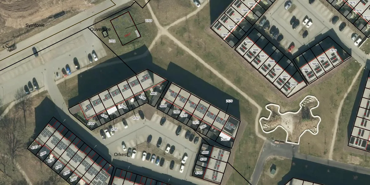 Het perceel waarop Orkest 17 staat heeft een oppervlakte van 96 m². Dit is een klein perceel. De perceeloppervlakte wordt geregistreerd door het Kadaster. Gedetailleerde informatie over de maten van dit perceel kunt u vinden in het rapport Kadastrale kaart met maatvoering van Orkest 17.
