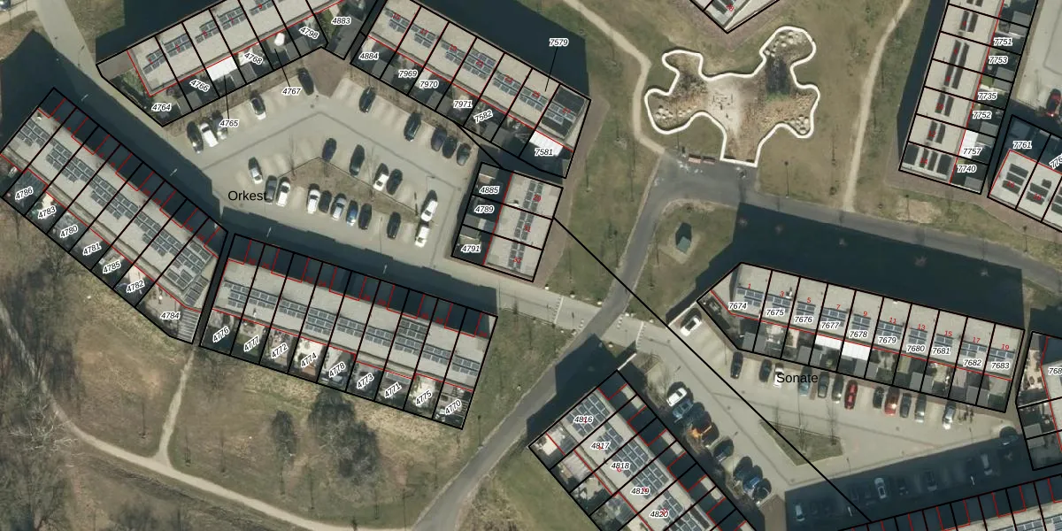 Het perceel waarop Orkest 33 staat heeft een oppervlakte van 100 m². Dit is een middelgroot perceel. De perceeloppervlakte wordt geregistreerd door het Kadaster. Gedetailleerde informatie over de maten van dit perceel kunt u vinden in het rapport Kadastrale kaart met maatvoering van Orkest 33.