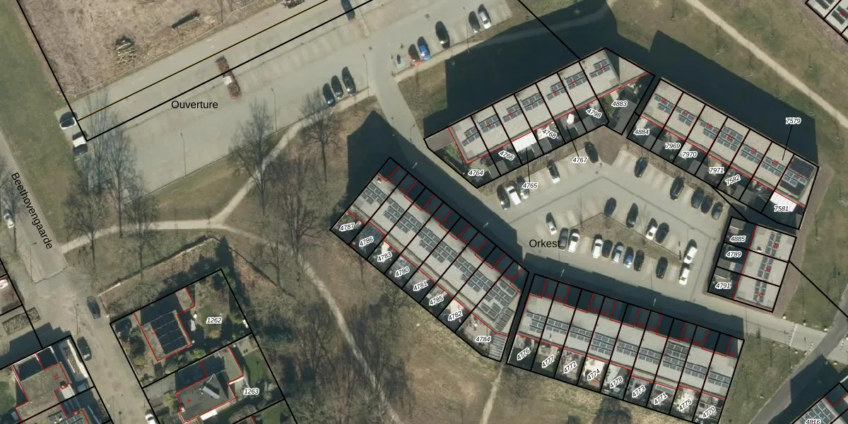 Het perceel waarop Orkest 6 staat heeft een oppervlakte van 120 m². Dit is een middelgroot perceel. De perceeloppervlakte wordt geregistreerd door het Kadaster. Gedetailleerde informatie over de maten van dit perceel kunt u vinden in het rapport Kadastrale kaart met maatvoering van Orkest 6.