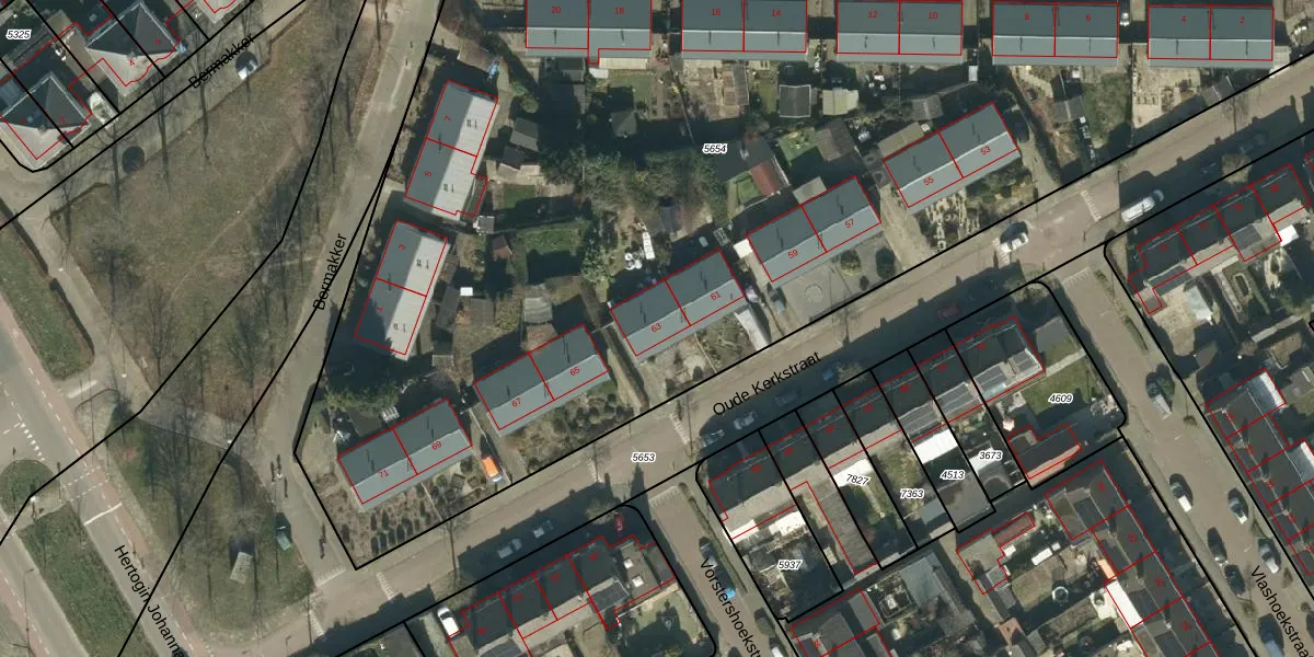 Het perceel waarop Oude Kerkstraat 63 staat heeft een oppervlakte van 7583 m². Dit is een zeer groot perceel. De perceeloppervlakte wordt geregistreerd door het Kadaster. Gedetailleerde informatie over de maten van dit perceel kunt u vinden in het rapport Kadastrale kaart met maatvoering van Oude Kerkstraat 63.