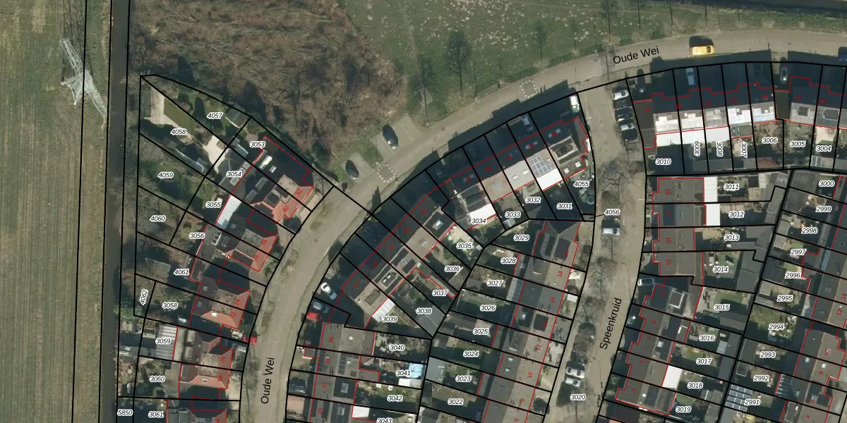 Het perceel waarop Oude Wei 45 staat heeft een oppervlakte van 183 m². Dit is een middelgroot perceel. De perceeloppervlakte wordt geregistreerd door het Kadaster. Gedetailleerde informatie over de maten van dit perceel kunt u vinden in het rapport Kadastrale kaart met maatvoering van Oude Wei 45.