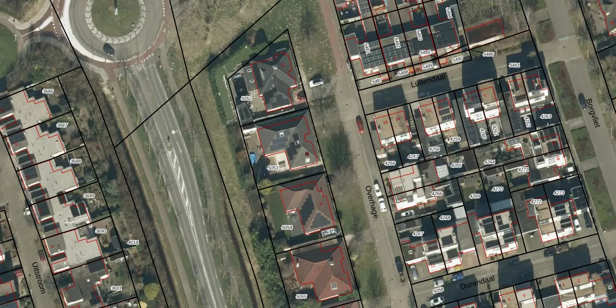 Gebruik de zoekbalk of klik op een perceel voor informatie over de adressen binnen dit perceel.