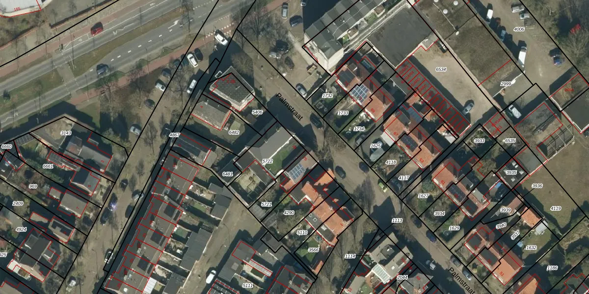 Het perceel waarop Palmstraat 78 staat heeft een oppervlakte van 360 m². Dit is een groot perceel. De perceeloppervlakte wordt geregistreerd door het Kadaster. Gedetailleerde informatie over de maten van dit perceel kunt u vinden in het rapport Kadastrale kaart met maatvoering van Palmstraat 78.