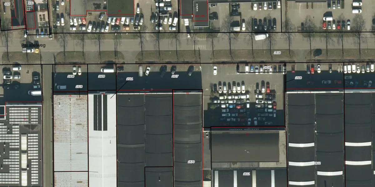 Het perceel waarop Parallelweg 7-D staat heeft een oppervlakte van 1485 m². Dit is een zeer groot perceel. De perceeloppervlakte wordt geregistreerd door het Kadaster. Gedetailleerde informatie over de maten van dit perceel kunt u vinden in het rapport Kadastrale kaart met maatvoering van Parallelweg 7-D.