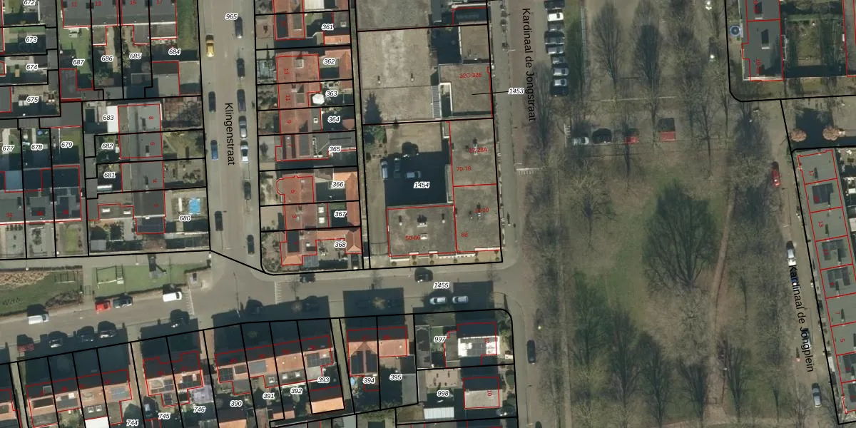Het perceel waarop het adres ligt is OSS00-G-1454. De afkorting 'OSS00' staat voor kadastrale gemeente Oss. De gemiddelde perceelgrootte in Oss is 2393,82 m². Dit perceel is kleiner: de perceeloppervlakte bedraagt 1035 m². Het grootste perceel in de kadastrale gemeente is 36,1 ha. Het kleinste perceel heeft een oppervlakte van 0 m². Er zijn 25 adressen aanwezig op het perceel. De huidige grenzen van het perceel zijn digitaal in de Basisregistratie Kadaster (BRK) geregistreerd op 04-03-2011.