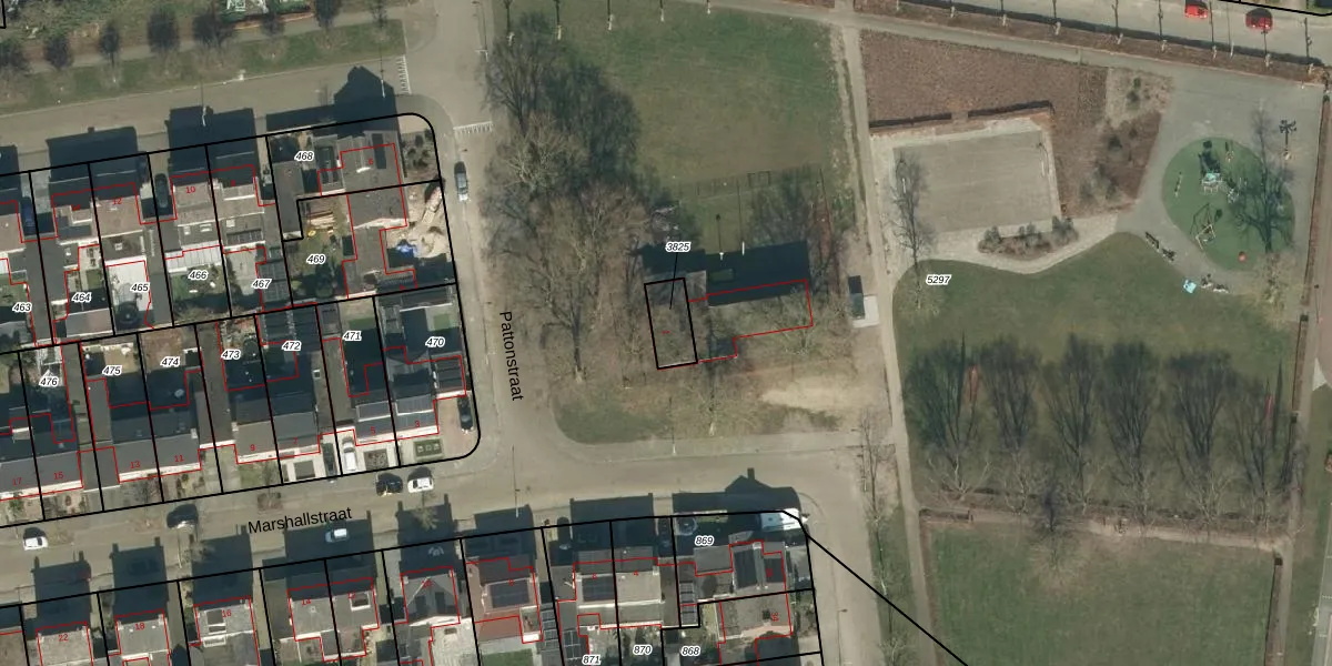 Pattonstraat 1 is gelegen op kadastraal perceel OSS00K3825. Deze kadastrale aanduiding is uniek en wordt gebruikt door het Kadaster om eigendomsrechten en andere zakelijke rechten vast te leggen. Het perceel maakt onderdeel uit van de kadastrale gemeente Oss.