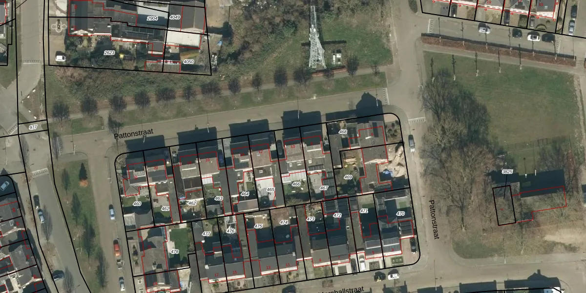 Pattonstraat 10 is gelegen op kadastraal perceel OSS00K466. Deze kadastrale aanduiding is uniek en wordt gebruikt door het Kadaster om eigendomsrechten en andere zakelijke rechten vast te leggen. Het perceel maakt onderdeel uit van de kadastrale gemeente Oss.