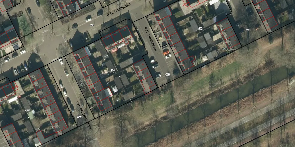 Het perceel waarop P.C. Hooftstraat 30 staat heeft een oppervlakte van 2447 m². Dit is een zeer groot perceel. De perceeloppervlakte wordt geregistreerd door het Kadaster. Gedetailleerde informatie over de maten van dit perceel kunt u vinden in het rapport Kadastrale kaart met maatvoering van P.C. Hooftstraat 30.