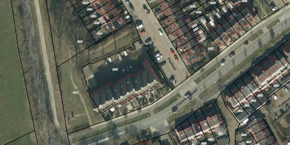 Het perceel waarop Peellaan 137 staat heeft een oppervlakte van 2037 m². Dit is een zeer groot perceel. De perceeloppervlakte wordt geregistreerd door het Kadaster. Gedetailleerde informatie over de maten van dit perceel kunt u vinden in het rapport Kadastrale kaart met maatvoering van Peellaan 137.