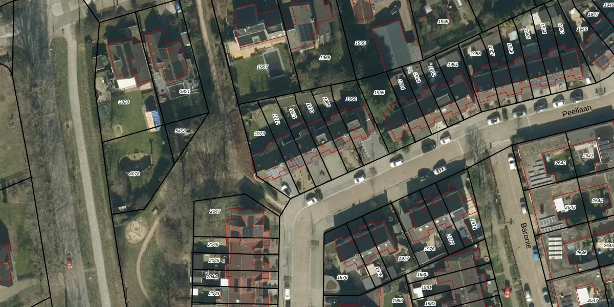 Het perceel waarop Peellaan 87 staat heeft een oppervlakte van 181 m². Dit is een middelgroot perceel. De perceeloppervlakte wordt geregistreerd door het Kadaster. Gedetailleerde informatie over de maten van dit perceel kunt u vinden in het rapport Kadastrale kaart met maatvoering van Peellaan 87.